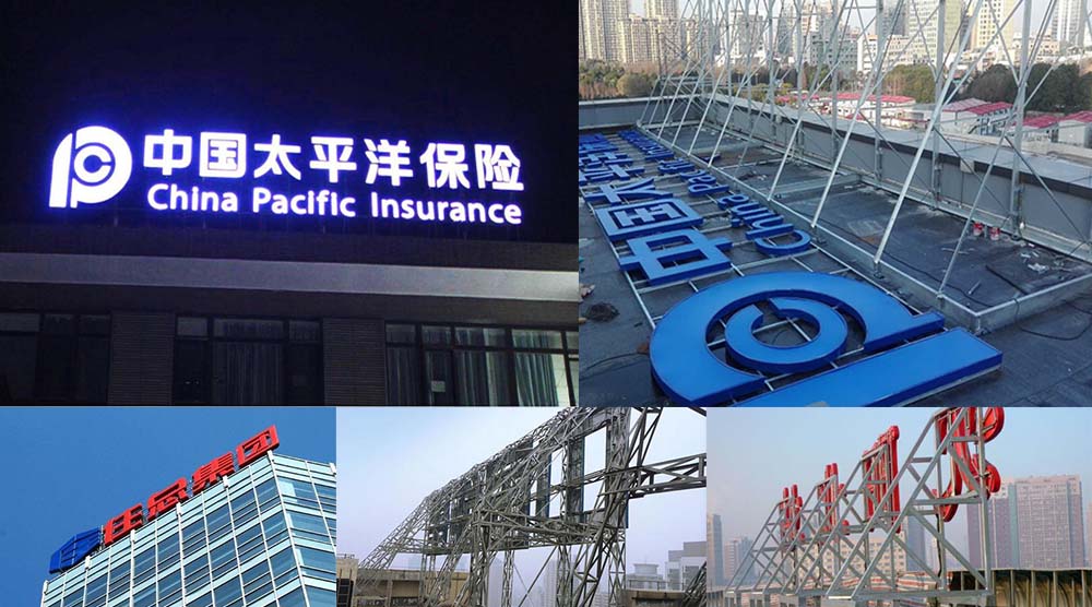 不發(fā)光字按材料分為鈦金字,不銹鋼字,鍍鋅板烤漆字。樓頂大字即是由鋼結(jié)構(gòu)支撐架和金屬字形組成的大型廣告字。